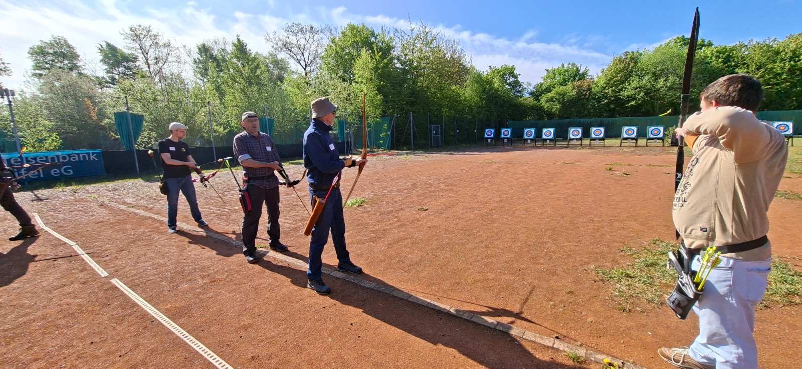 Am 25. April 2026 fand bei bestem Frühlingswetter die Vereinsmeisterschaft Scheibe der Bogenschützen Rheinbach e.V. statt. Insgesamt 23 Schützinnen und Schützen traten an, um sich auf 30 Meter Distanz über 72 Pfeile — aufgeteilt in zwei Durchgänge à 36 Pfeile — in den verschiedenen Klassen sportlich zu messen. Geschossen wurde in den Gruppen Damen, Herren, Jugend, Veteranen sowie erstmals in einer eigenen Klasse für Visierschützen.